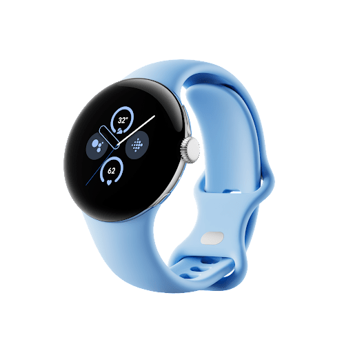 Montre Connectee Google Pixel watch 2 boitier en aluminium bracelet sport bleu